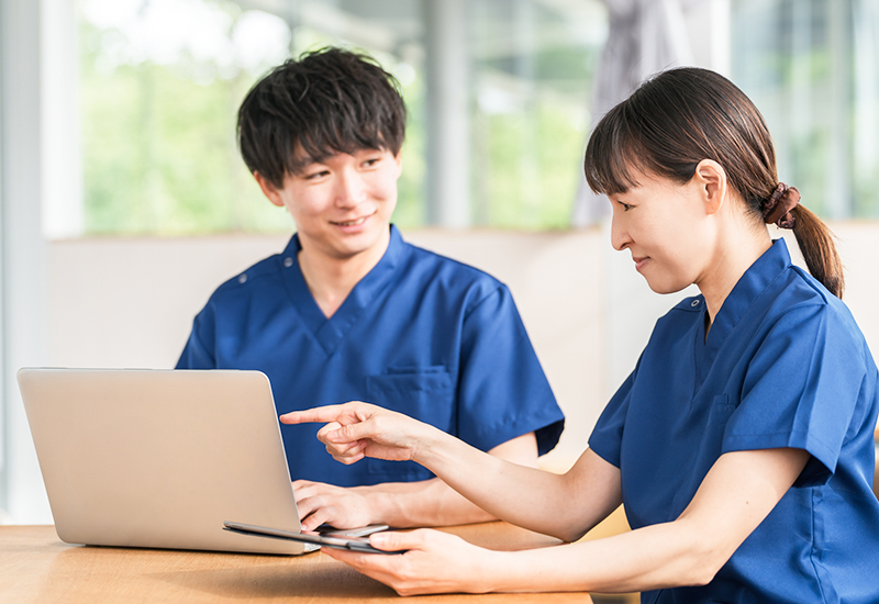 昼食後、患者様がすっきりと過ごせるよう、口腔ケアの介助を行います。お口の中を清潔に保つことは、感染症予防にもつながる大切なケアです。その後、患者様が安全・安楽にベッドで休めるよう、臥床の介助を行います。 - 14:00